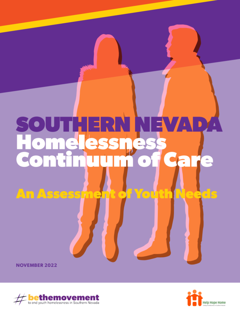 Southern Nevada Plan to End Youth Homelessness (October 2018): Clark County’s north star on how to end youth homelessness, created by the Movement and approved as the Southern Nevada Homelessness Continuum of Care and City of Las Vegas’ official plans to address youth homelessness
